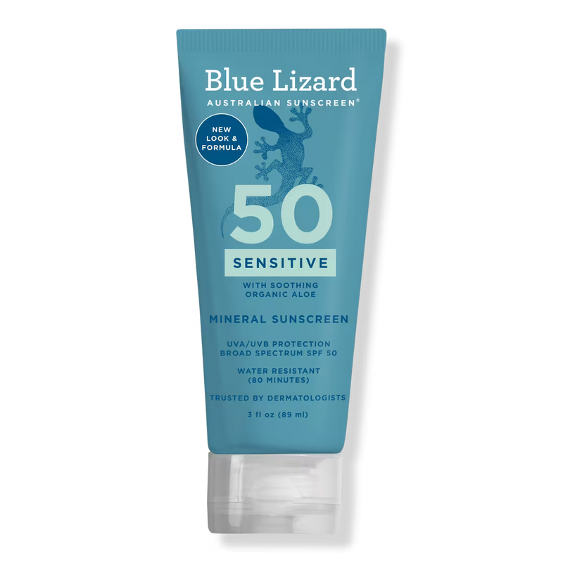 Blue Lizard Sensitive Mineral Sunscreen Lotion SPF 50, $13: Budget-friendly derm favorite for sensitive skin