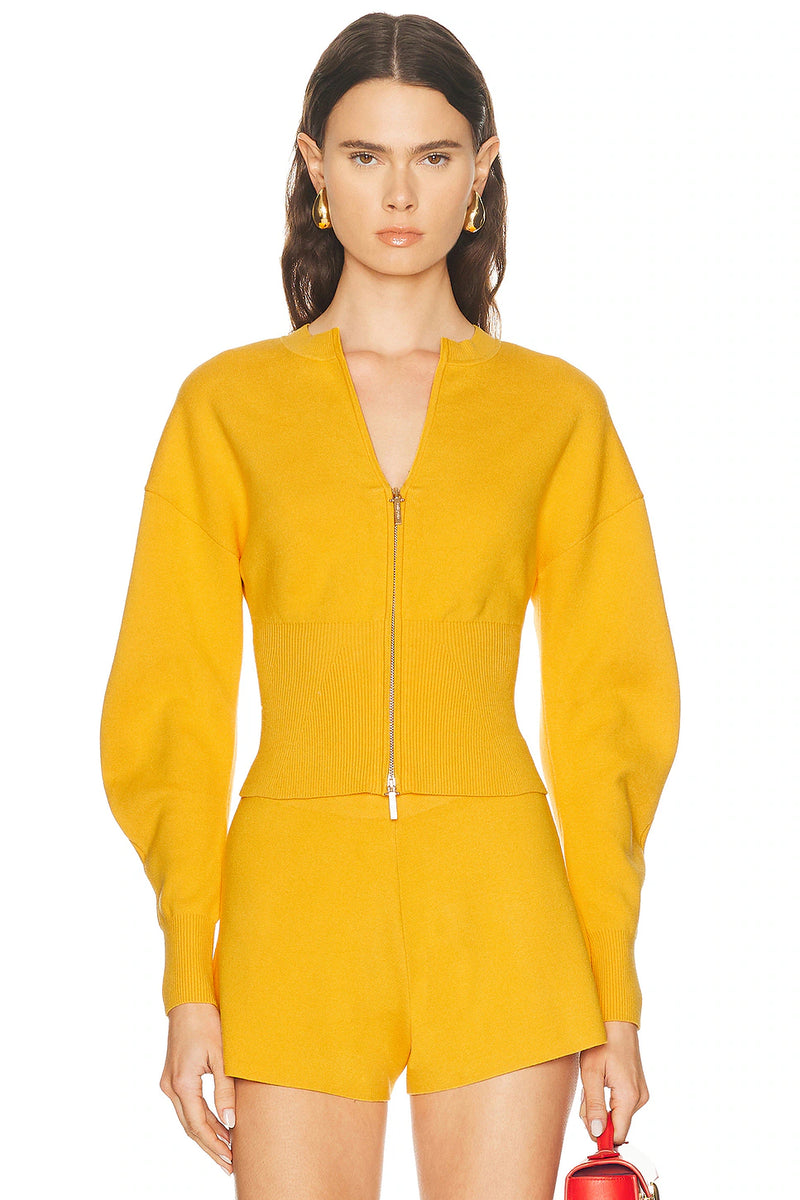 A boldly modern cardigan: Cult Gaia Monroe Cardigan, $498. Marigold and barrel-sleeved, this cardigan is modern and chic.