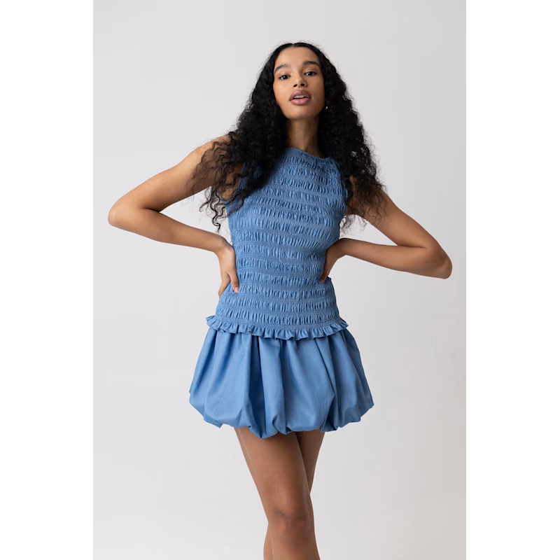 Best Y2K-inspired skirt for spring: Claudia Chambray Blue Ultra Puffball Mini Skirt, $142. Get the chance to restyle your favorite high school skirt with this long blue bomb